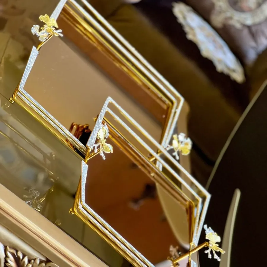 طقم صواني معدن ذهبي كنار فضي ستراس