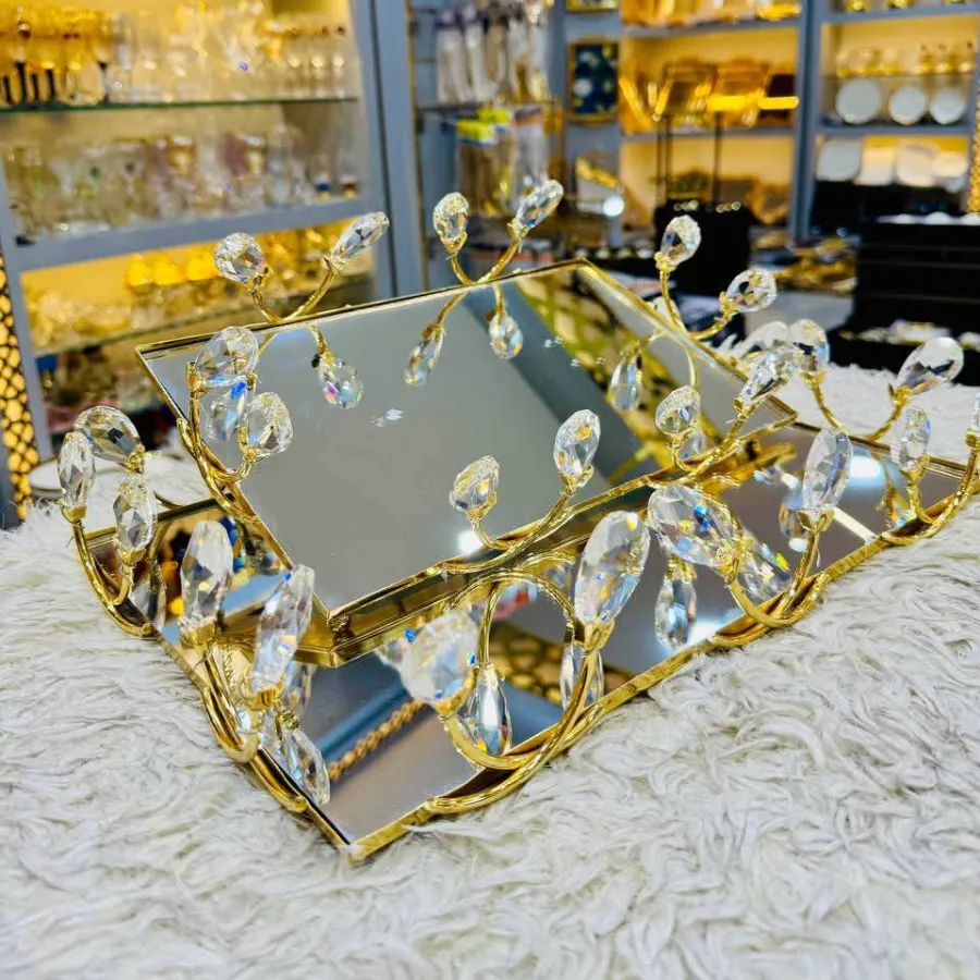 طقم صواني كريستال حجر نافر قطعتين