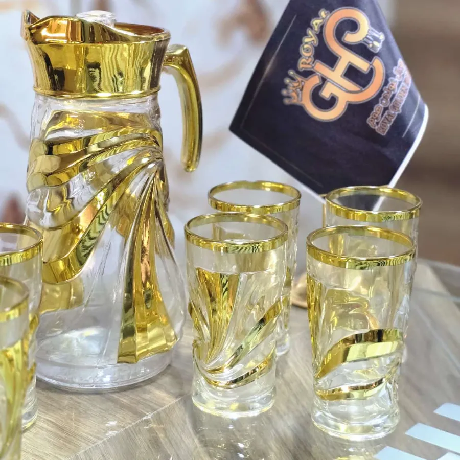 طقم 6 كاسات مع ابريق دهبي 🌟