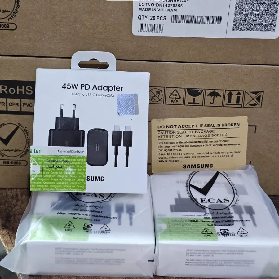 🎗 شاحن 45W نوع أول يدعم شحن 🔥🔥 فائق السرعة 0.20 مختوم ختوم الشركة وكل 20 بكرتونة 🎗